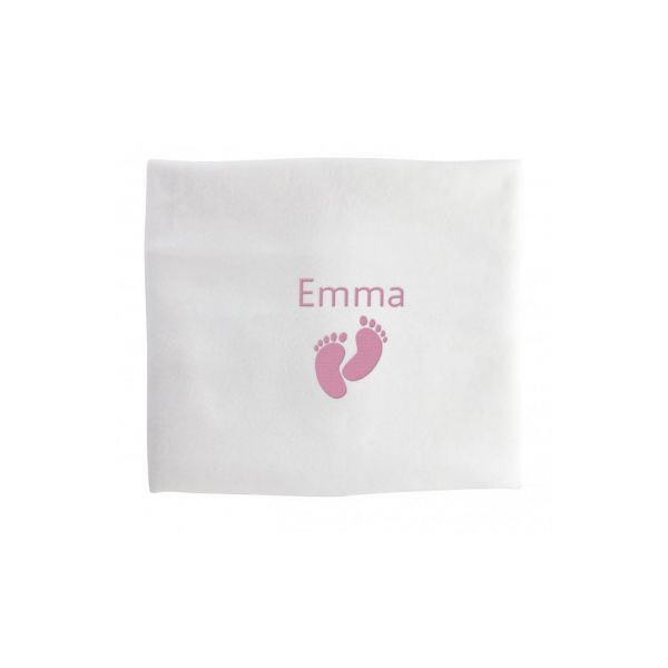 Couverture polaire pour bébé avec broderie centré en haut de la couverture. Découvrez cette belle couverture polaire blanche que vous pouvez personnalisée avec le prénom de votre enfant et petits motifs.